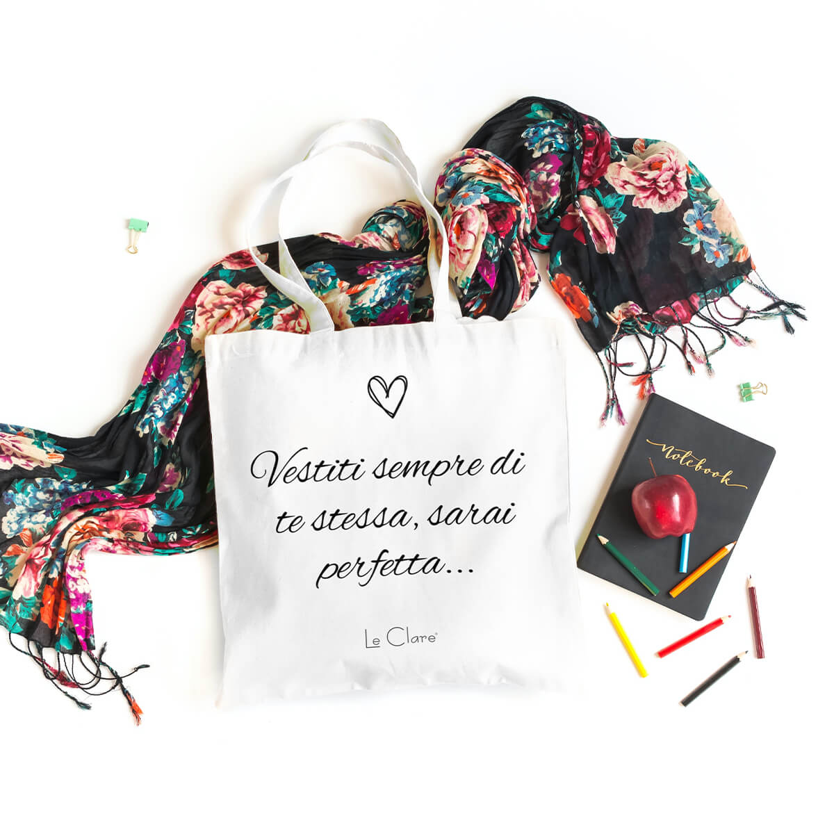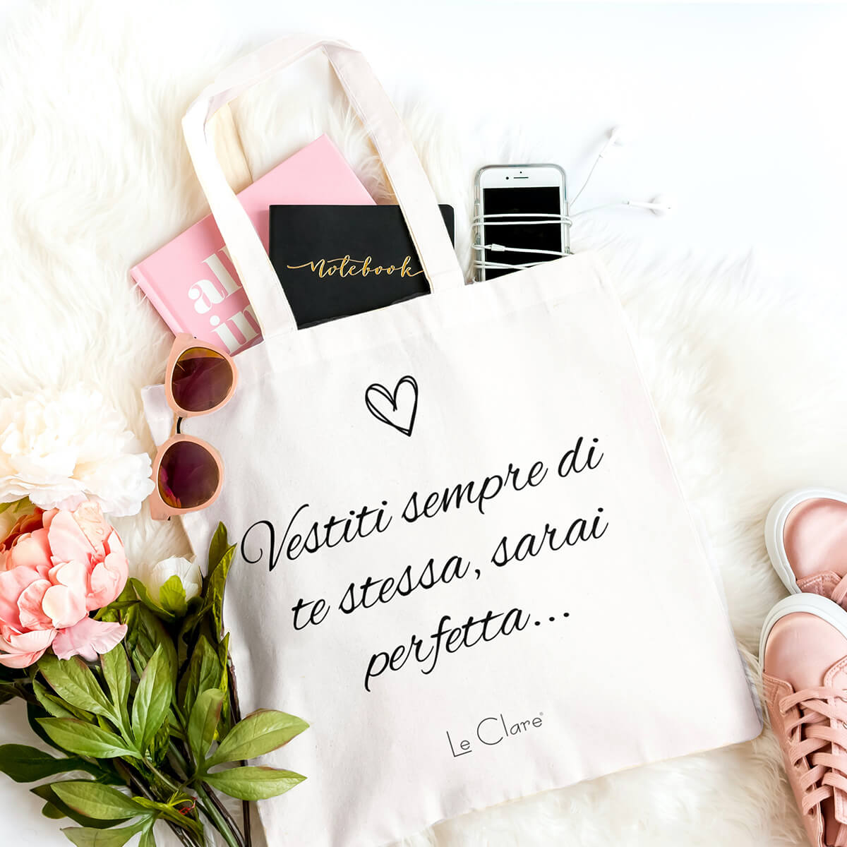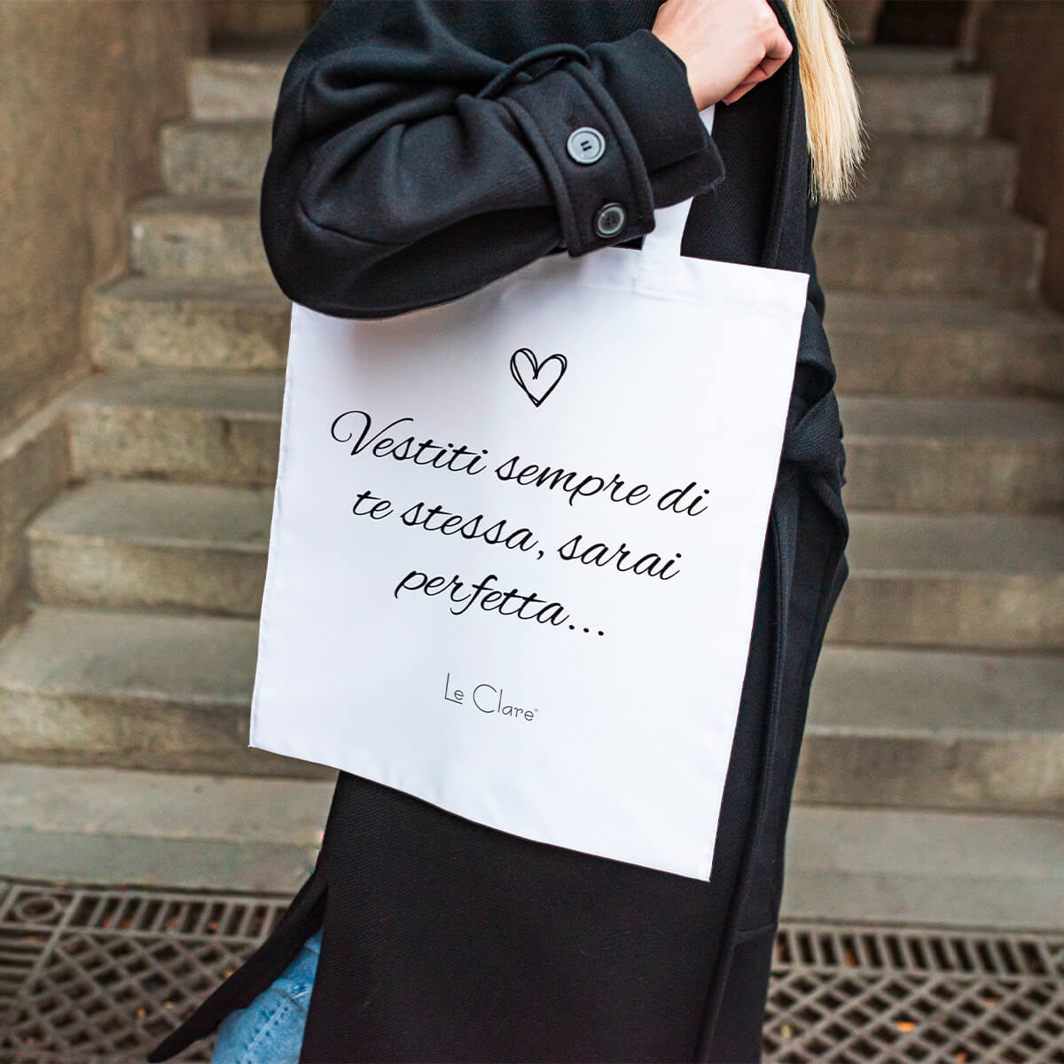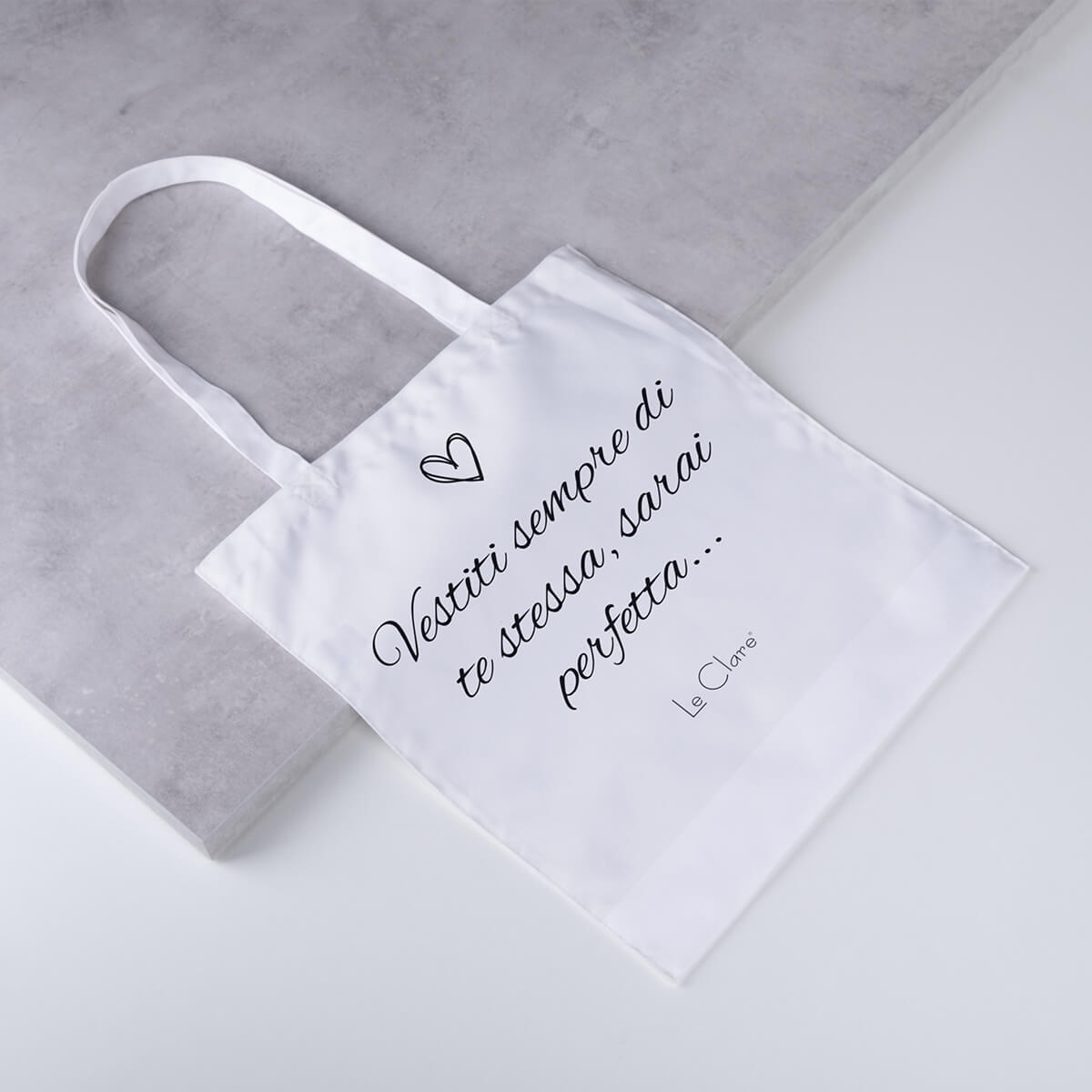 Borsa con scritta “Vestiti sempre di te stessa, sarai perfetta..” in cotone da portare sempre con te a fare la spesa, in vacanza o a lavoro.